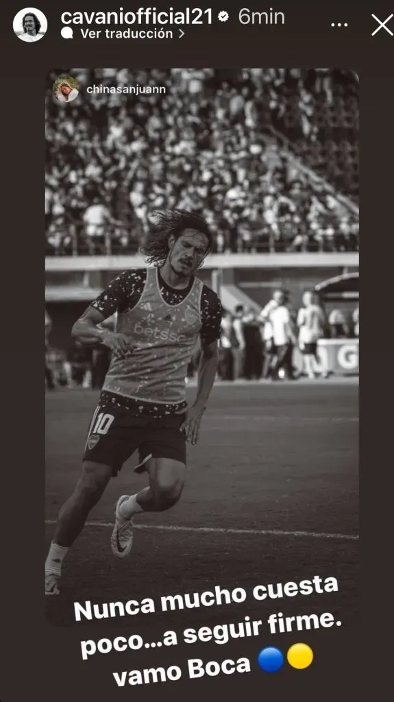 Los hinchas le hicieron saber su descontento y este domingo, en la previa de un nuevo partido de Boca, Cavani respondió en su cuenta de Instagram. El delantero publicó una historia para reflejar el momento en el que se encuentra.
