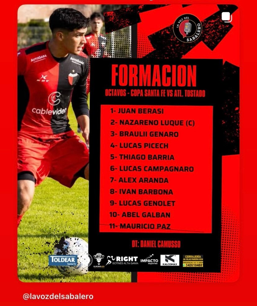 Atlético Tostado y Colón juegan hoy por los octavos de final de la Copa Santa Fe 2025. El partido se disputará desde las 17:30 en la Villa Recreativa de Tostado y tendrá el arbitraje de Leandro Aragno de la Liga Rafaelina.
