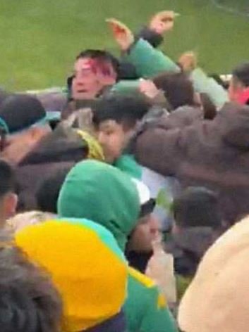 En el sector del estadio donde habitualmente se encuentra la barra del club, que arrastra un largo historial de conflictos internos, se vio como un grupo de hinchas del Tiburón terminaron a los cuchillazos en plena popular. Hay heridos, se pueede apreciar a uno de ellos con la cara completamente ensangrentada. Mientras tanto, otras dos personas se atacan mutuamente con cuchillos y elementos punzantes. Se confirmaron dos personas heridas.