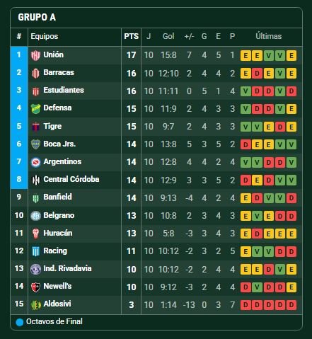 Terminó la Fecha 10 y con los empates de Estudiantes de La Plata ante Newell´s hoy en Rosario y ayer el de Barracas Central ante Belgrano el Tatengue de Leo Madelón sigue siendo el único líder de la Zona «A». Mirá los primeros puestos!