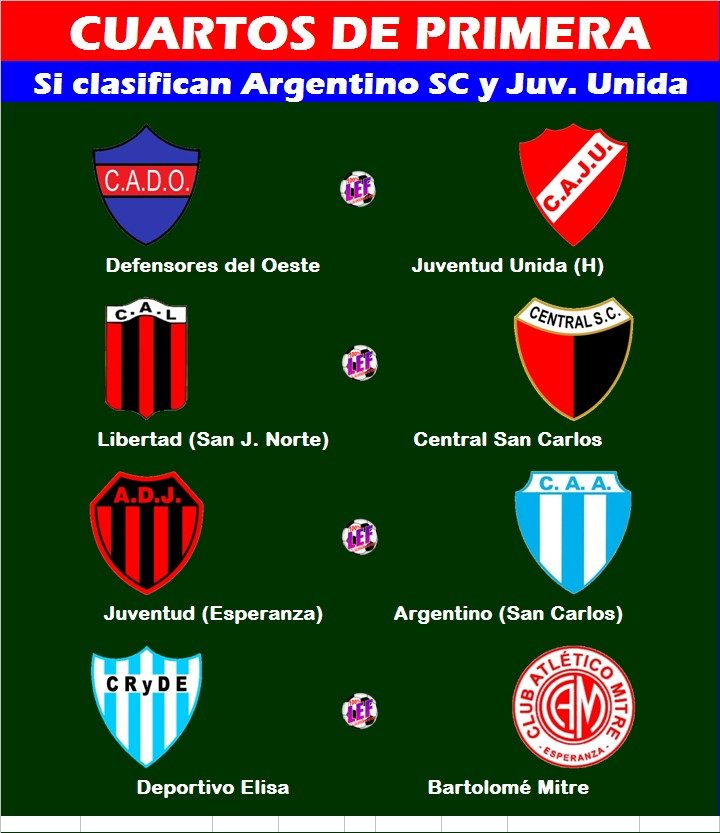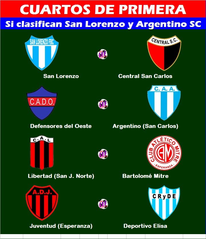 Siguen en competencia y están entre los ocho mejores: Defensores del Oeste, Libertad SJN, Central San Carlos, Asociación Deportiva Juventud, Deportivo Elisa y Bartolomé Mitre.