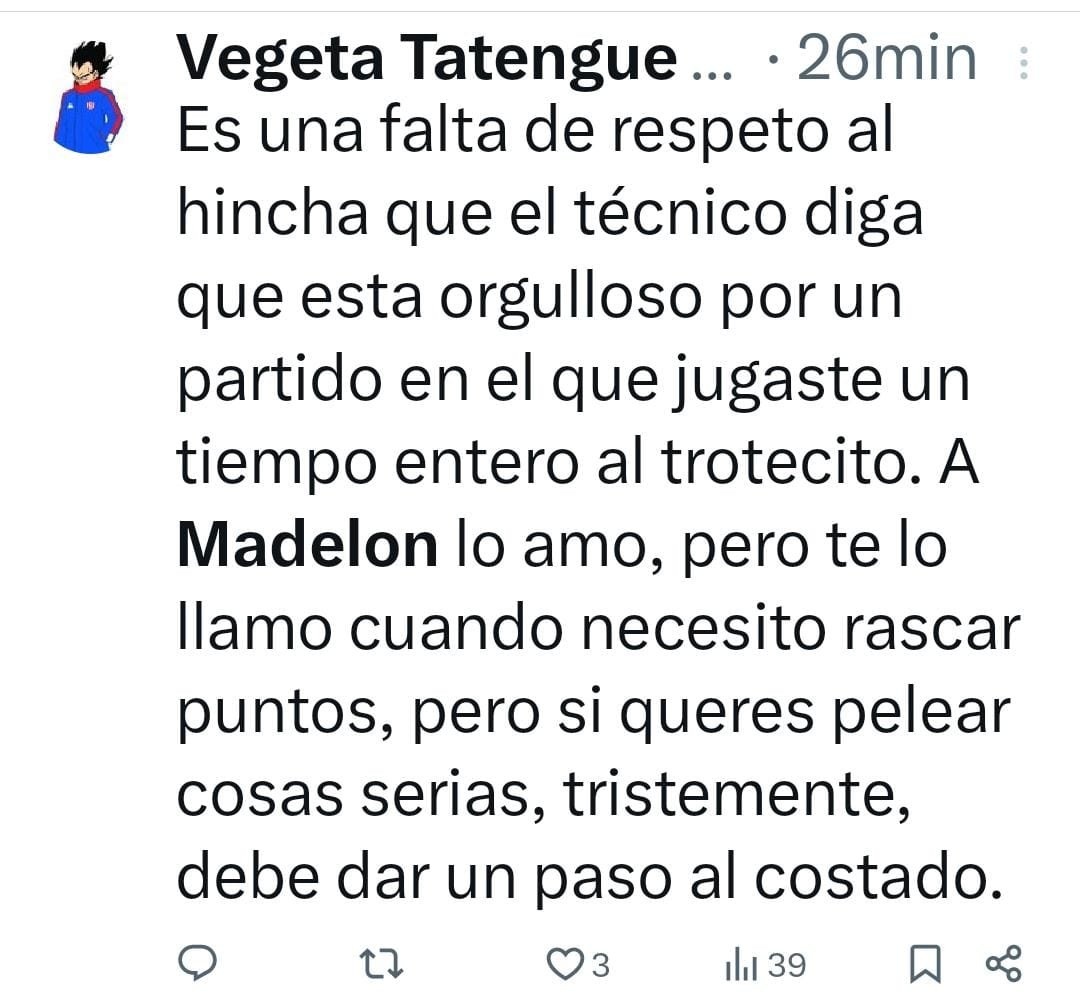 Luego del encuentro los hinchas Tatengue no tardaron en demostrar su descontento por las redes sociales.