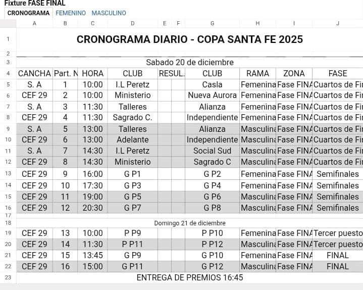 La Copa Santa Fe de Handball ya tiene su fixture y cronograma de partidos confirmados. El torneo se desarrollará este fin de semana en la ciudad, con actividades programadas para el sábado y el domingo en dos sedes distintas.