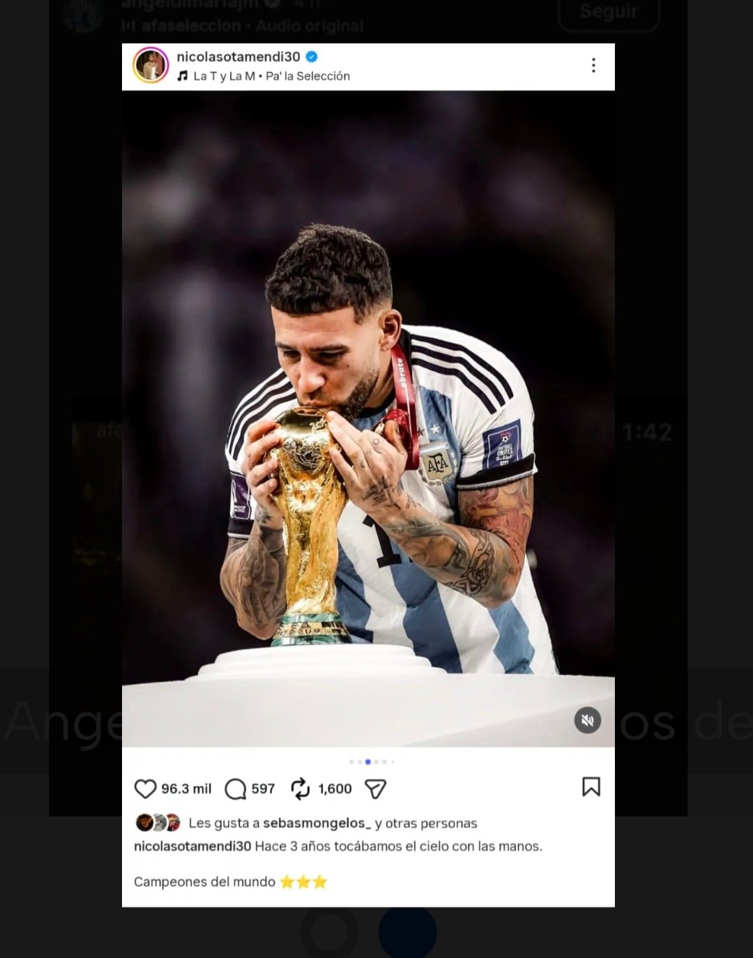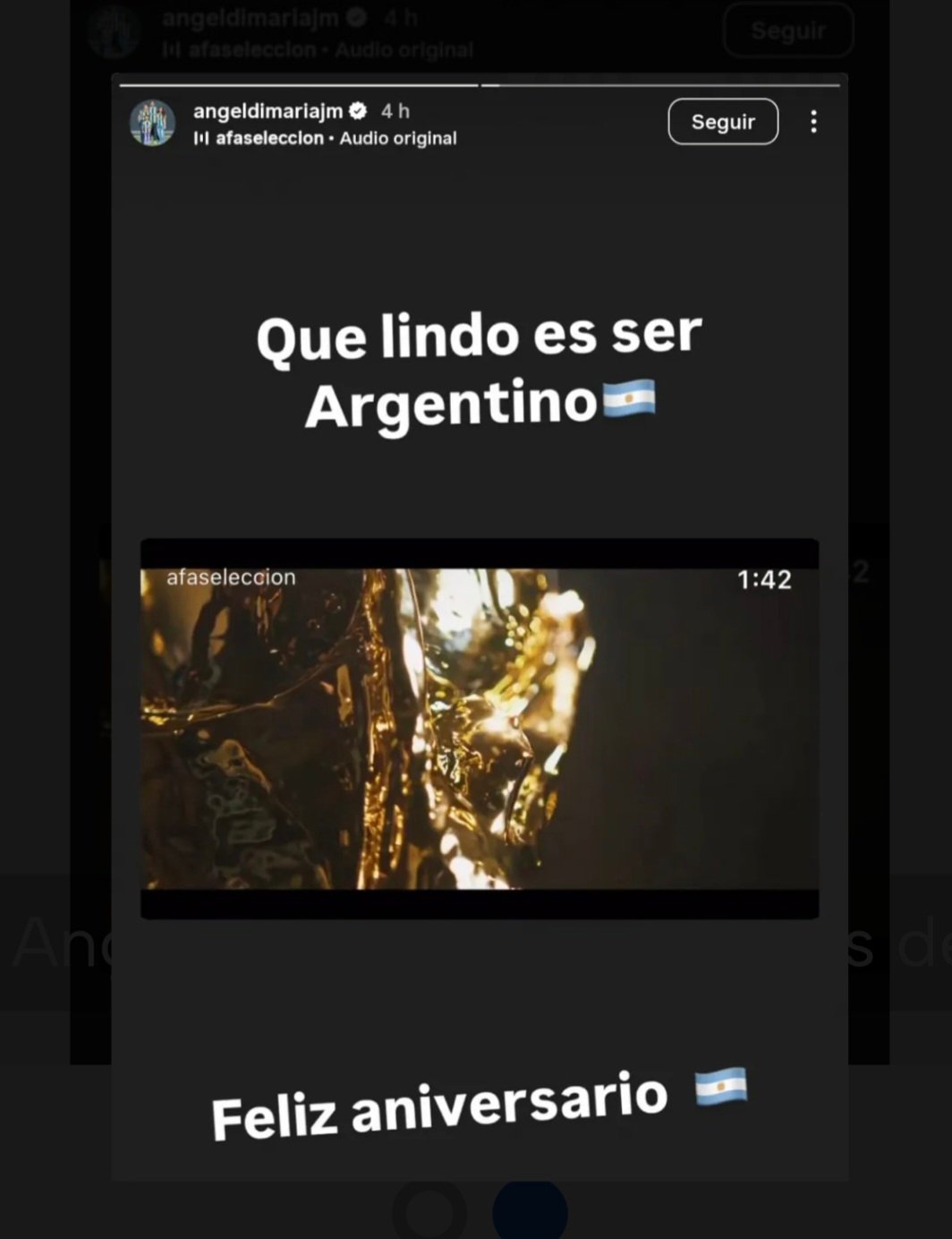 Luego, sumaron sus mensajes la mayoría de los jugadores que saborearon la gloria en Medio Oriente. Ángel Di María, autor del segundo gol en la final ante Francia, compartió en su historia un video de la Asociación del Fútbol Argentino y agregó: “Qué lindo es ser argentino. Feliz aniversario”.