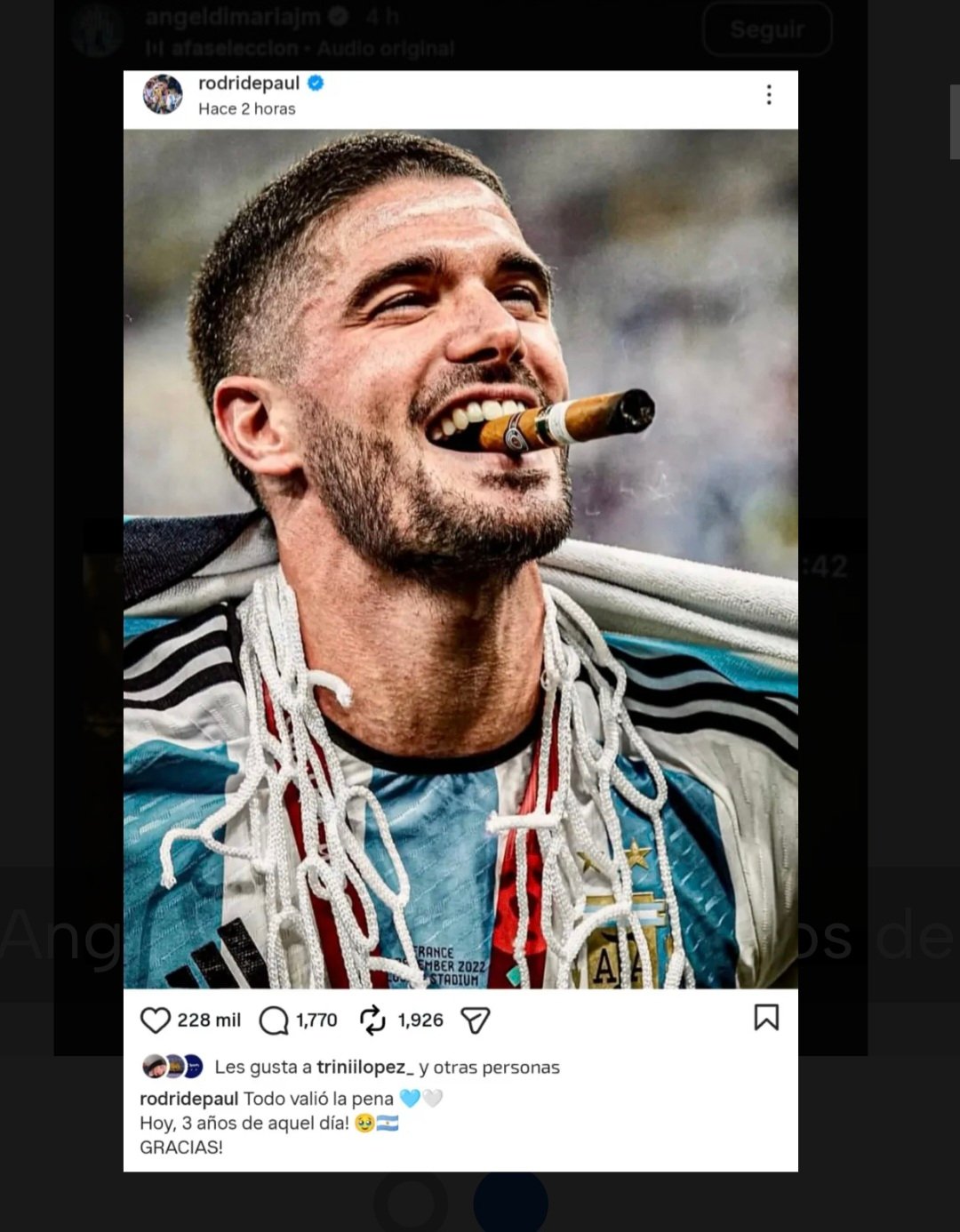 Rodrigo de Paul, mediocampista de Inter Miami, comentó: “Todo valió la pena, a tres años de aquel día”. En sintonía, Leandro Paredes publicó: “Hace 3 años y para toda la vida”. Finalmente, Nicolás Otamendi, zaguero de Benfica, concluyó: “Hace 3 años tocábamos el cielo con las manos”.