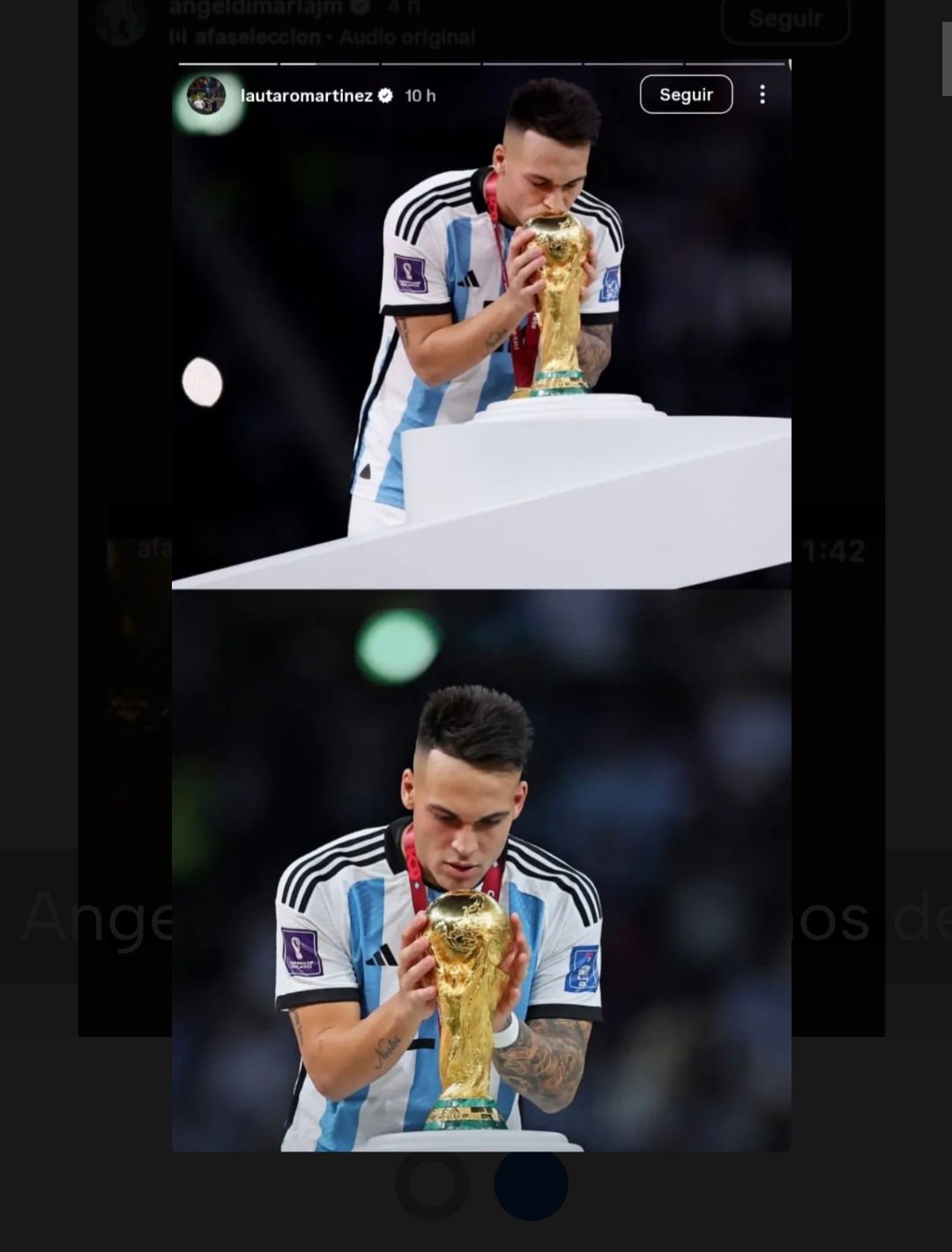 Por otra parte, Lautaro Martínez, Enzo Fernández y Alexis Mac Allister, piezas fundamentales para Lionel Scaloni, publicaron fotos alusivas a la tercera Copa del Mundo que obtuvo la Argentina, detrás de las conquistas de 1978 y 1986. Además, Emiliano Dibu Martínez, guante de oro del campeonato, reposteó algunas de sus atajadas que fueron clave para vencer al elenco europeo.