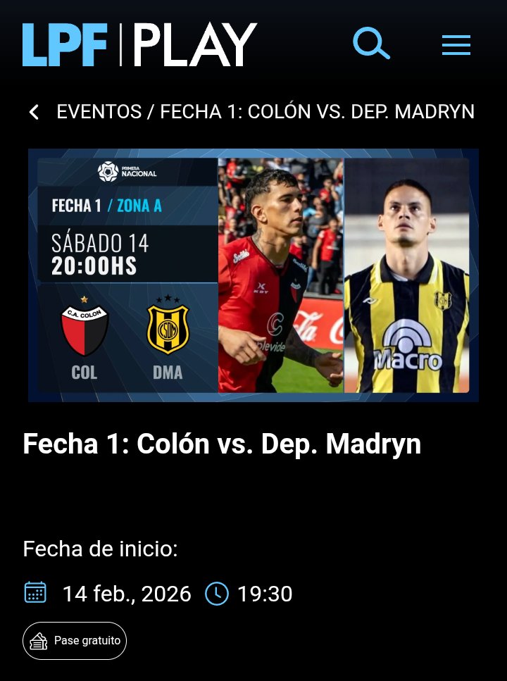 Hoy sábado 14 de Febrero debuta Colón en la Primera Nacional 2026, con nuevo sistema de televisación por streaming para ver los partidos en vivo del certamen mayor de ascenso. El cotejo ante del Deportivo Madryn en el Brigadier López está programado para las 20 hs.