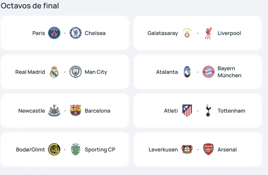 Como es de esperar siempre aparecen partidazos entre los grandes de Europa, así quedaron los cruces: