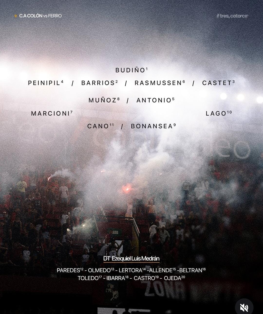 Colón: Matías Budiño; Mauro Peinipil, Pier Barrios, Federico Rasmussen, Facundo Castet; Julián Marcioni, Ignacio Antonio, Matías Muñoz, Ignacio Lago; Lucas Cano y Alan Bonansea. DT: Ezequiel Medrán.