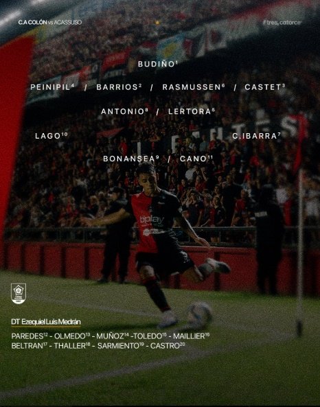 Colón: Matías Budiño; Mauro Peinipil, Pier Barrios, Federico Rasmussen y Facundo Castet; Conrado Ibarra, Ignacio Antonio, Federico Lértora, Ignacio Lago; Lucas Cano y Alan Bonansea. DT: Ezequiel Medrán.