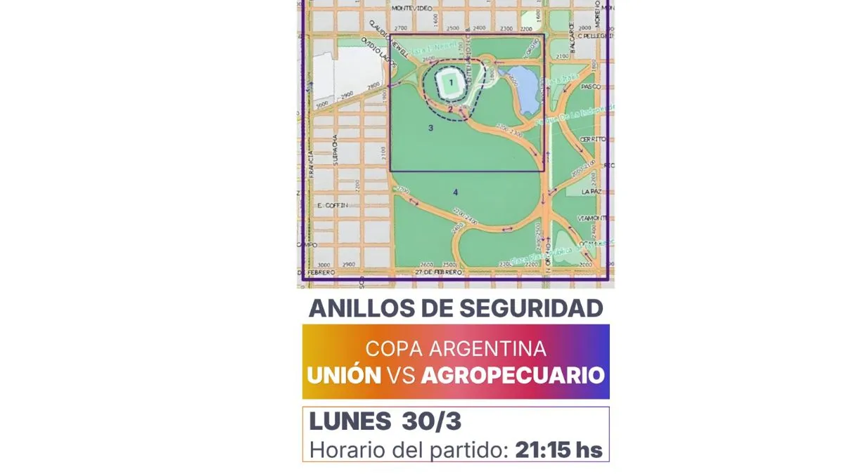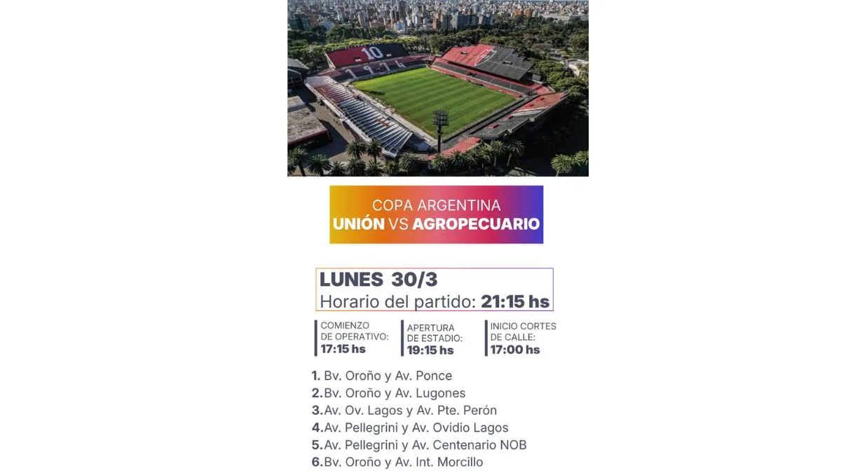 Unión y el «sojero» juegan por los 32avos de final de la Copa Argentina, desde las 21:15 en el estadio Estadio Marcelo Bielsa. Habrá anillos de seguridad, cortes de calles y horarios definidos para el ingreso.